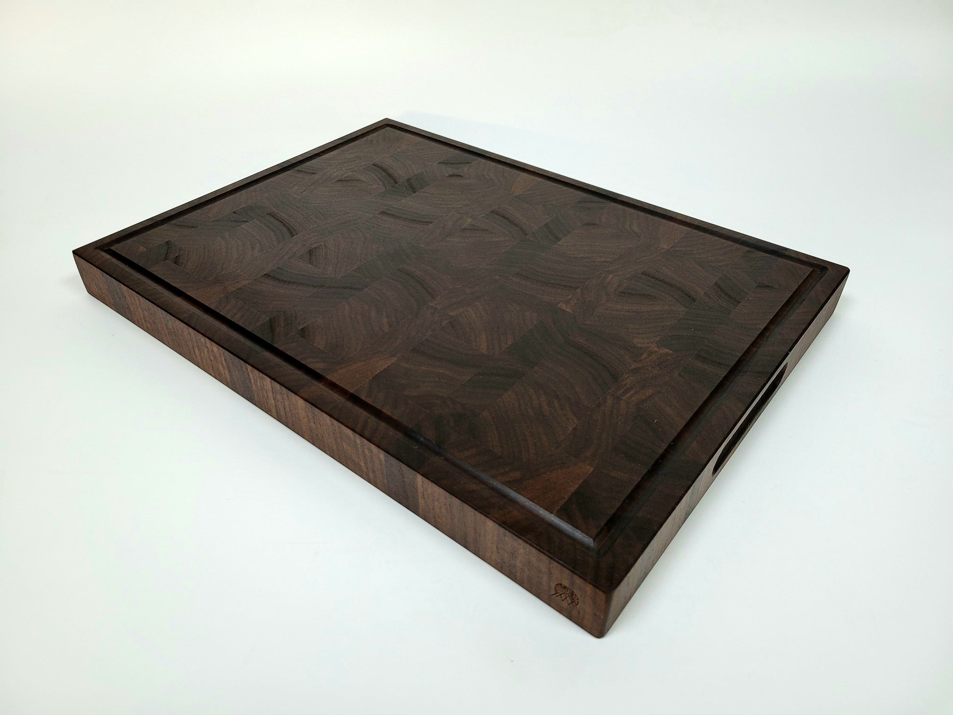 Perfekt zum Schneiden auf der vorderen Seite mit umlaufender Saftrille. Die glatte Rückseite kann z.B. zum Servieren oder Anrichten verwendet werden. Jedes Brett besitzt seitliche Griffmulden, die genau mittig angebracht sind.